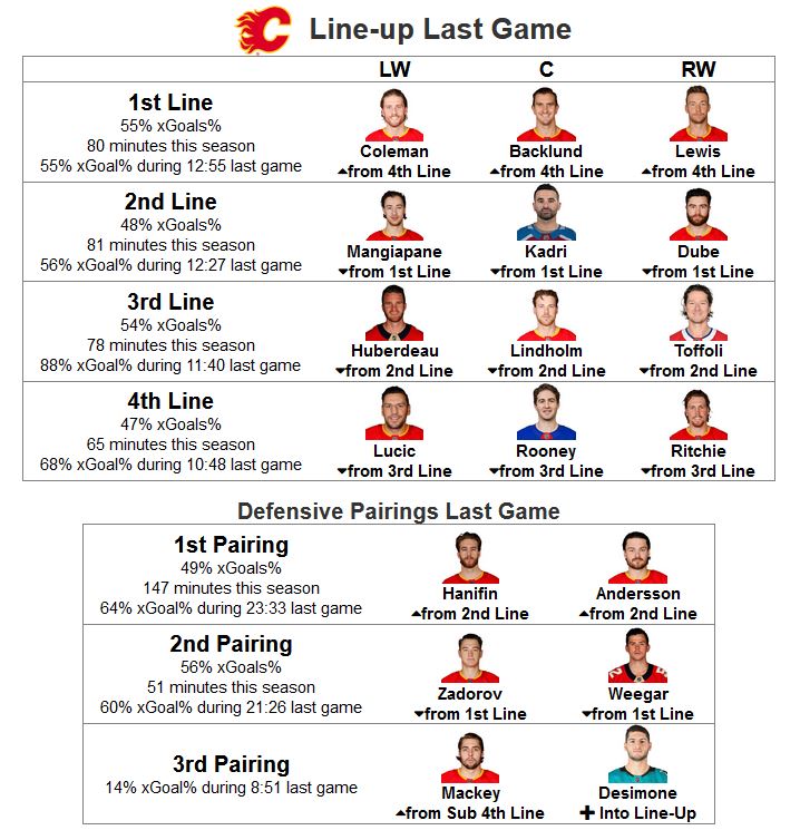 Thought the 4th line played really well yesterday, hopefully Sutter gives them some more opportunities tonight. They started the game on fire and created the first two goals with pace and being aggressive.