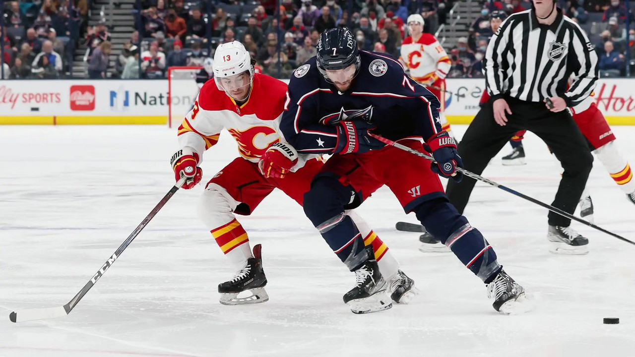 Calgary visits Columbus after Toffoli’s 2-goal game